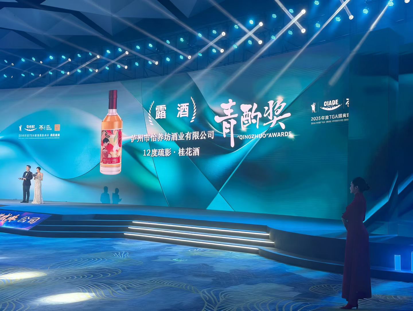 日,第二十四届国际酒博会青酌奖颁奖现场,泸州市怡养坊酒业有限公司出品的